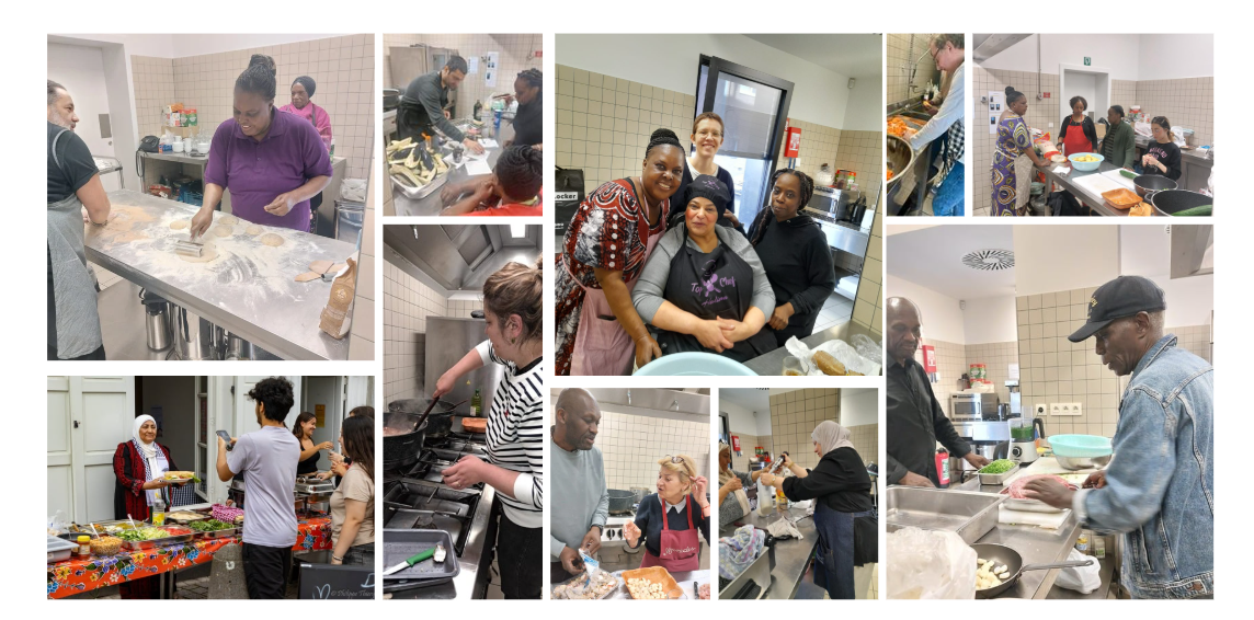 We koken samen, eten samen, leren nieuwe gerechten aan elkaar, en beginnen zo met elkaar te babbelen.